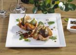 Продукти за 4 порции: • 8 зрели черни смокини • 8 тънки филийки Пражка шунка Тандем • 150гр. меко синьо сирене и сирене “Бри” • 2 супени лъжици балсамов оцет • пресни листа мента, за гарниране • зехтин за намазване …